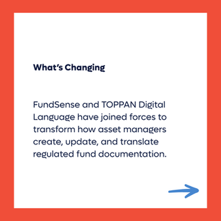 We’re pleased to announce a new collaboration between Toppan Digital Language and FundSense, bringing together two areas of deep industry expertise to transform how asset managers create, update, and translate regulated fund documentation.